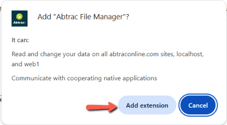 Note: If you are getting the following popup when trying to use the Abtrac Chrome Document Manager, then follow the instructions below.