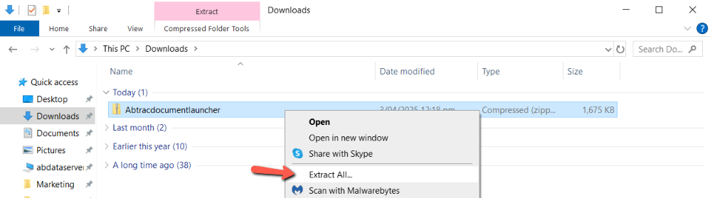 Step 3: Locate the new file, unzip by right clicking and selecting ‘Extract All’.