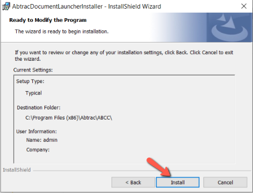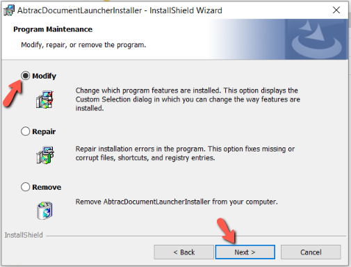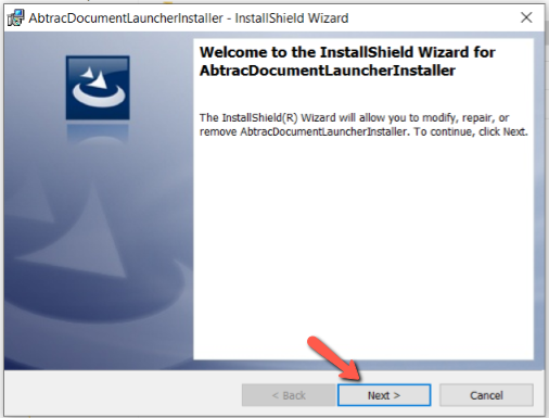 This will take you to the AbtracDocumentLauncherInstaller Install Shield Wizard.
