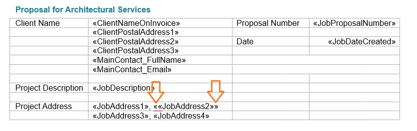 «JobProposalNumber» | Proposal Number from Job Details page | |