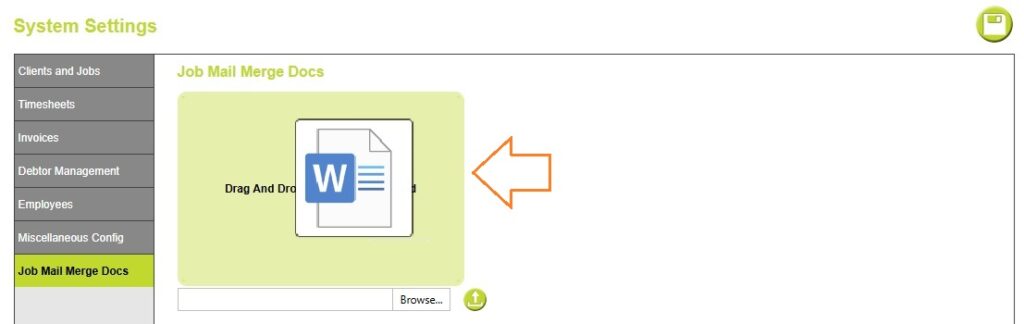 From this page, you may either use the browse button or just drag and drop into the area highlighted the word template that you wish to upload into Abtrac.