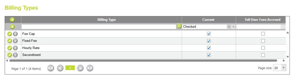 Administration » Maintenance » Billing Types