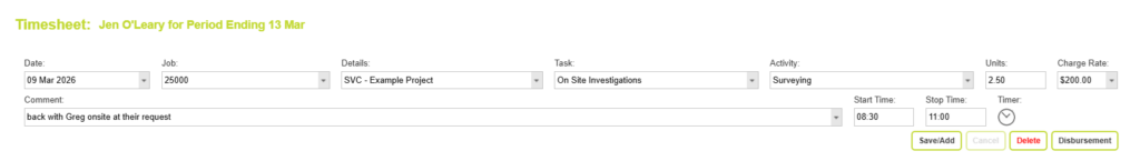 This will also clear the form, ready for a new timesheet line entry.