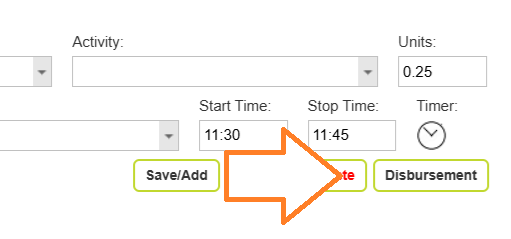 Click on the Disbursement button within the form to add a disbursement to your timesheet.